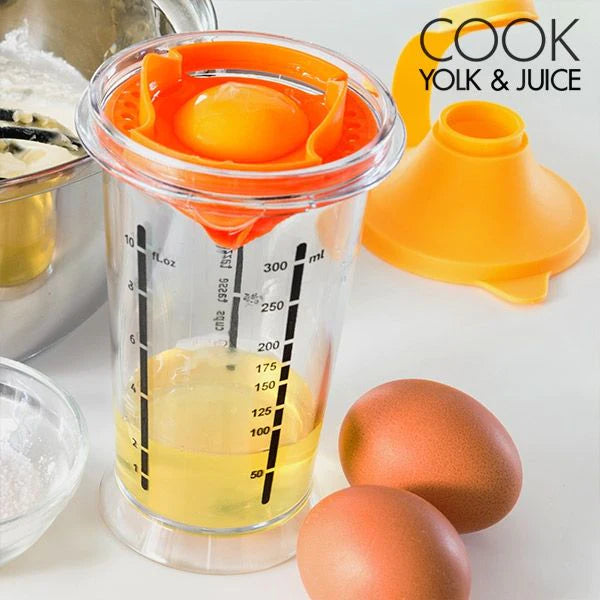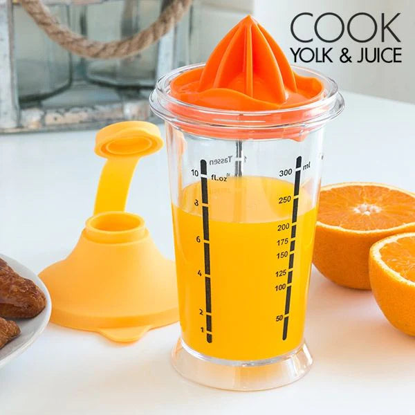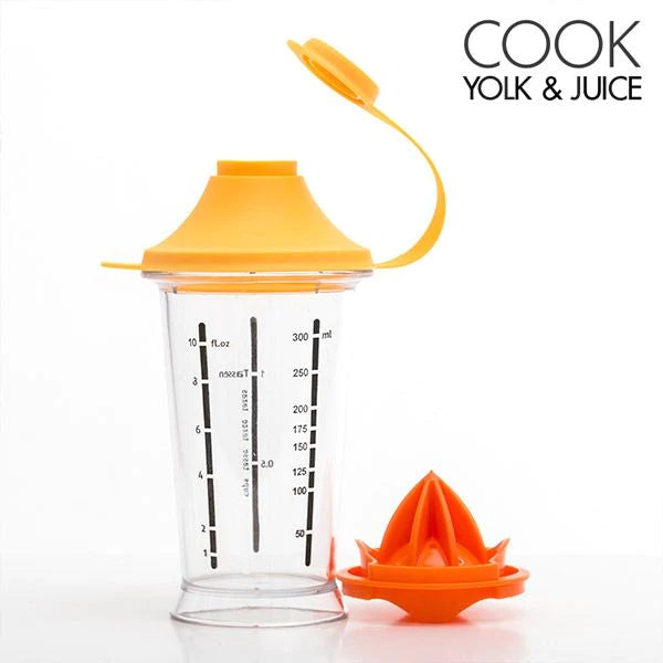 Kozarec za mešanje z ožemalnikom JUICY, inovativen izdelek, ki bo poskrbel za vedno sveže stisnjen sok, poln vitaminov. Uporabimo ga lahko tudi v kuhinji za lažje in preprosto ločevanje rumenjakov od beljaka.