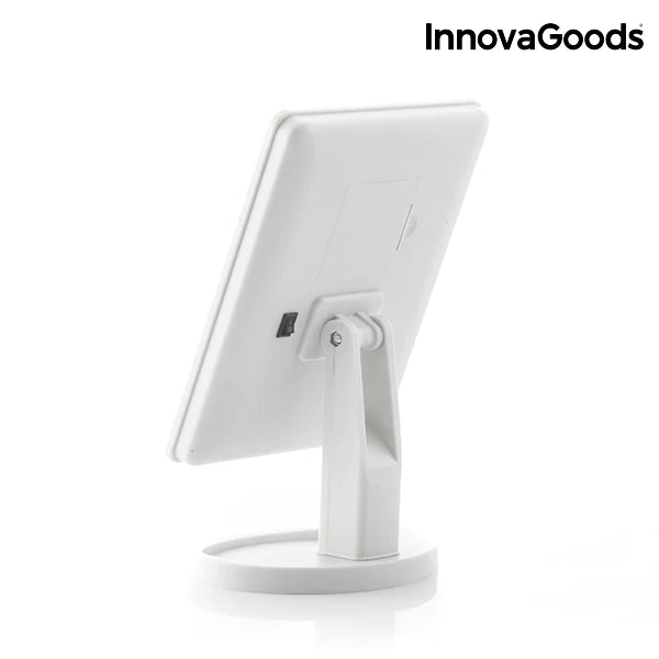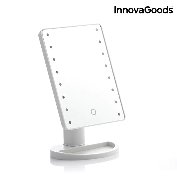 Namizno kozmetično ogledalo z LED lučkami je inovativno in izredno praktično za uporabo pri ličenju, friziranju ali depilaciji. Ogledalo je modernega videza, funkcionalne zanimive oblike in vrtljivo za 180 stopinj.