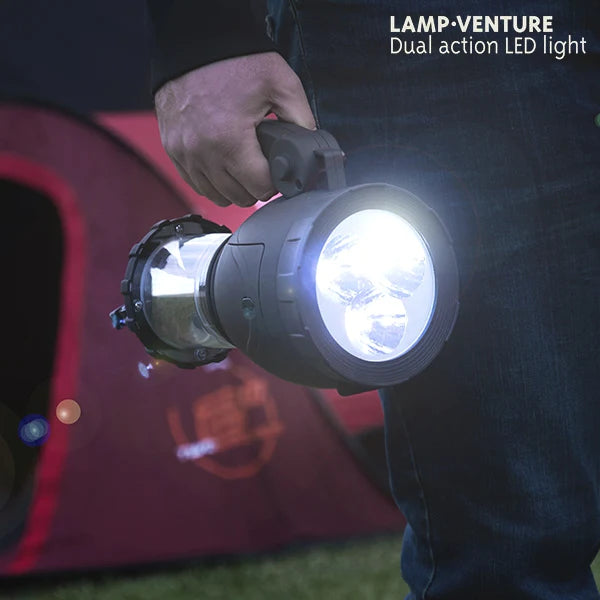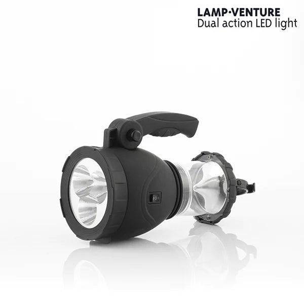 Svetilka z baklo AdVenture je izdelana iz obstojne plastike, ima dva različna ročaja za večje udobje in ima vgrajenih 8 močnih LED diod: 5 za svetilko in 3 za baklo za najboljšo osvetlitev.